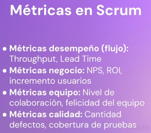Las métricas ayudan a evaluar progreso, salud del equipo y estado del producto. La clave está en usarlas para generar valor y abrir conversaciones francas en la daily scrum sobre impedimentos y ajustes del plan.