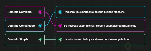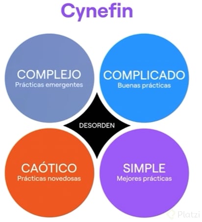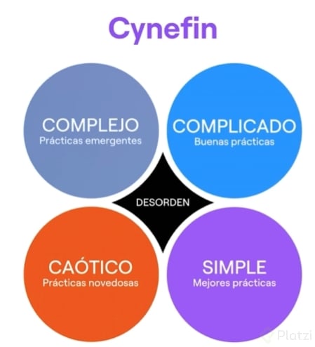 - Lectura del contexto con Cynefin: simple, complicado, complejo, caótico.