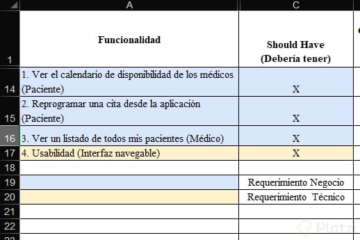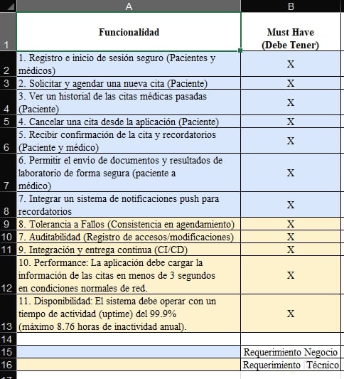 - *Must have*: funcionalidades esenciales y vitales para que el producto funcione.