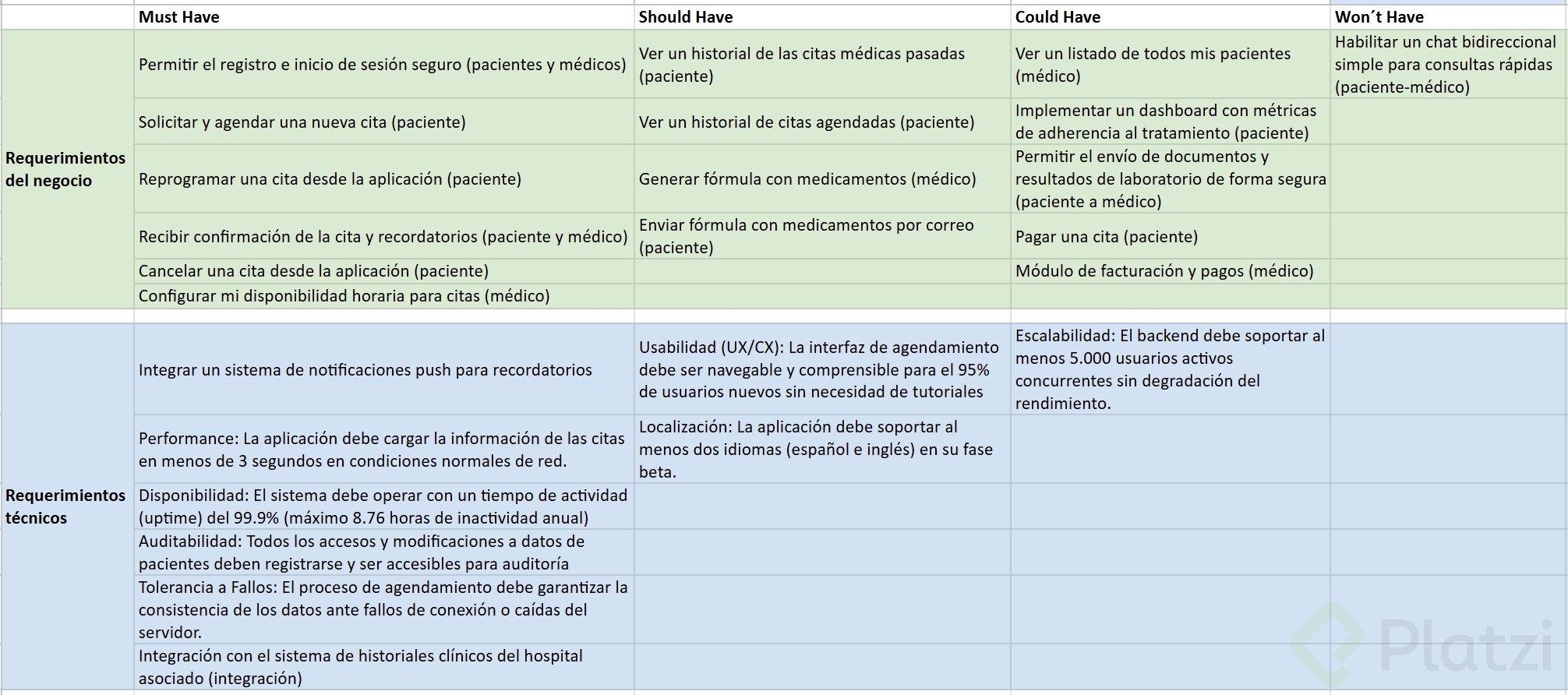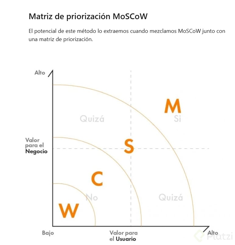 Esta priorización refleja la criticidad y la importancia de cada elemento dentro del producto. El product backlog es una lista viva que se actualiza con el aprendizaje del mercado, y MoSCoW le permite al product owner mantener claras las prioridades.