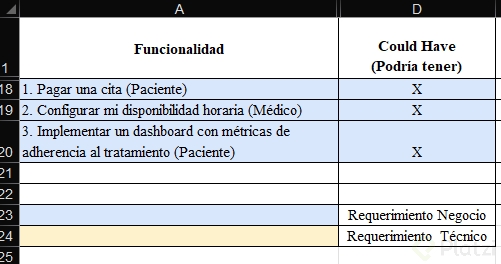 - *Could have*: deseables y opcionales; se implementan si hay tiempo y presupuesto.