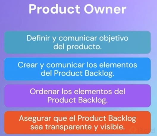 El product owner lidera el rumbo del producto con foco en valor. Su responsabilidad central es definir el objetivo del producto y comunicarlo a todos: cliente, equipo y organización. A partir de esa visión, gestiona el product backlog como fuente única de trabajo y expectativas.