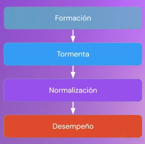 - Tormenta: surgen conflictos, roces y luchas de control.