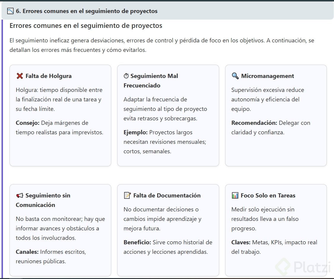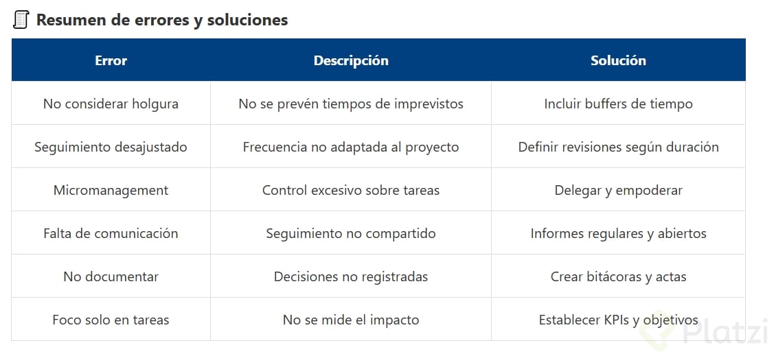 ¿Cuáles son los errores comunes en el seguimiento de proyectos?