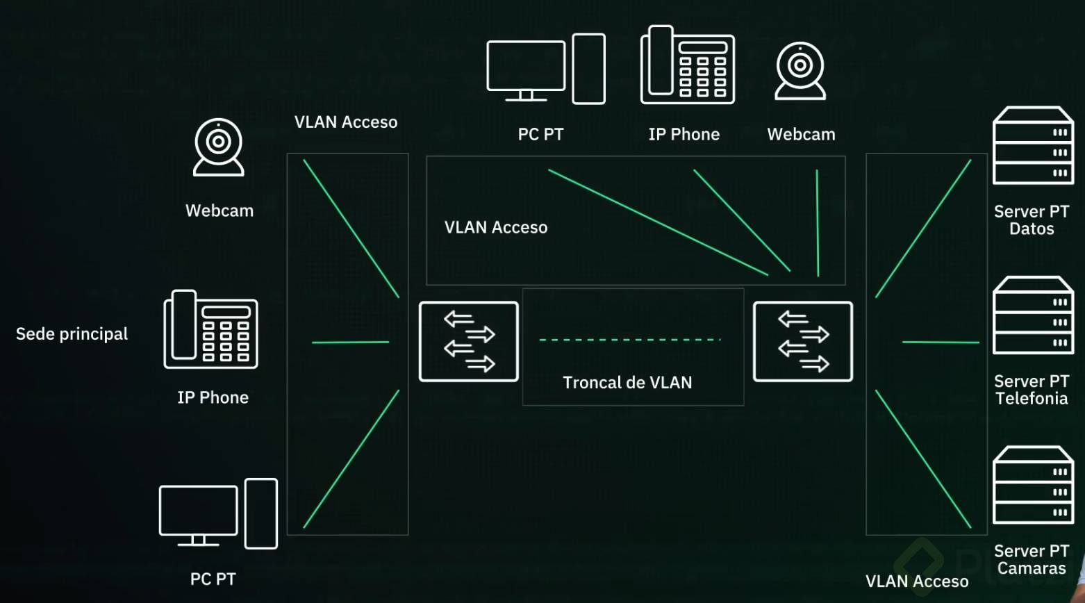Las VLAN de acceso se utilizan en los puertos que conectan a equipos terminales (como PCs o cámaras) y necesitan interactuar directamente con una VLAN específica. A diferencia de las troncales, su función es más limitada, ya que no transportan múltiples VLAN.