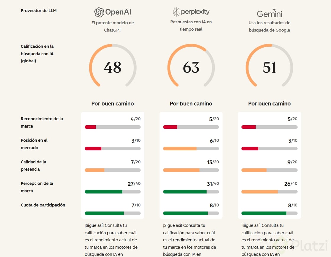 - Cómo cada motor interpreta y presenta tu marca.