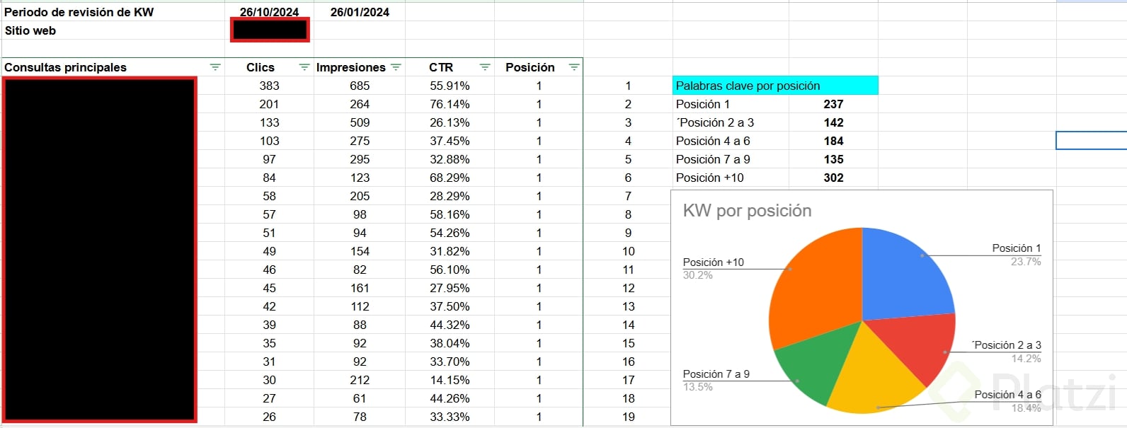 Palabras clave orgánicas: La opción de Organic Keywords revela las palabras clave con las que tu contenido está siendo encontrado. Esto es crucial para ajustar tus páginas a las búsquedas más relevantes.