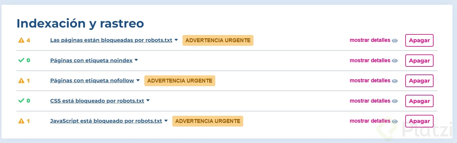 - En esta sección, podrás ver si hay páginas con la etiqueta "No Index". Si Spotivo muestra un cero, eso significa que ninguna de las páginas analizadas tiene esa etiqueta.