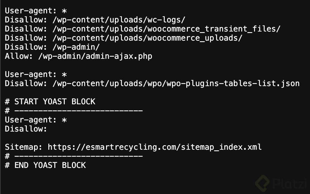 Un ejemplo de archivo robots.txt puede tener la siguiente estructura: