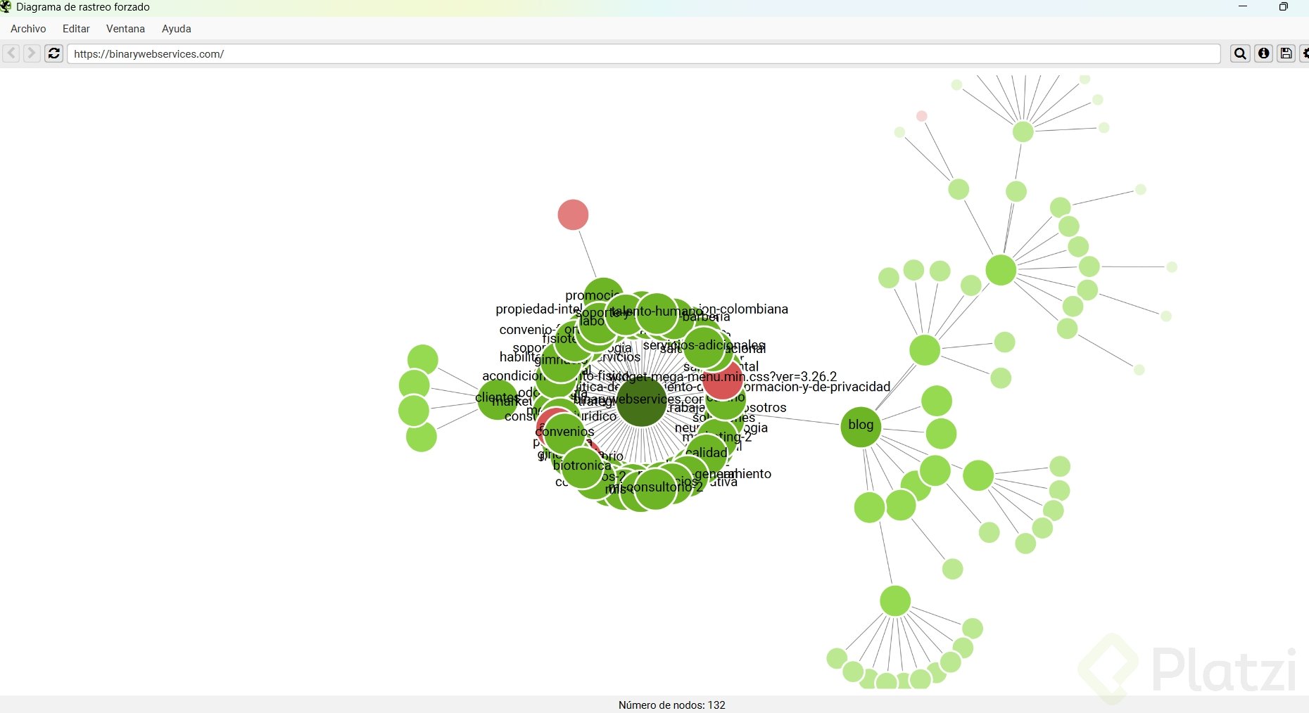 Una vez finalizado el rastreo, podemos acceder a la sección "Visualizaciones" y seleccionar "Diagrama de rastreo forzado". Aquí podremos ver un gráfico que representa la estructura de navegación del sitio web.