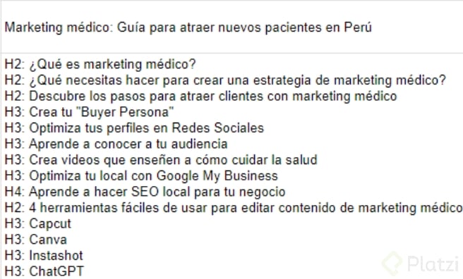 Ahora es tu turno. Elige un tema, busca en Google y observa cómo están estructurando el contenido tus competidores. Luego, crea tu mejor H1 y títulos internos siguiendo estas pautas. Comparte tu H1 en el sistema de discusiones y lee los H1 de tus compañeros, dejando tus comentarios y sugerencias.