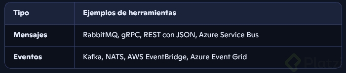 - Los eventos se emplean para notificar microtransacciones ya concluidas, permitiendo a otros servicios tomar acciones sobre hechos consumados.
