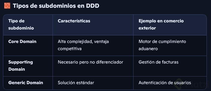 - Domain-driven design: El eje principal es el modelo de dominio, especialmente útil cuando trabajas con superdominios y adaptaciones específicas.