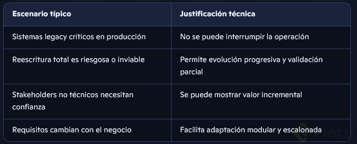 Mejorar la arquitectura de un sistema es esencial para mantenerlo flexible y sostenible. El uso de métricas de arquitectura y patrones como strangler fig facilita la transición de implementaciones antiguas a nuevas, sin interrumpir la operación del sistema. Este enfoque resulta práctico cuando hay que negociar cambios con stakeholders no técnicos y al gestionar arquitecturas que requieren evolucionar según la carga y las necesidades del negocio.