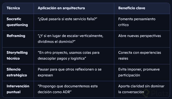 Las técnicas de conversación pueden generar cambios inmediatos en las prioridades. Por ejemplo, los hallazgos durante los pre-mortem pueden llevar al equipo a replantear tareas y al arquitecto a extender el diseño inicial. La comunicación ayuda a detectar escenarios que requerirán intervención directa, asegurando que el sistema evolucione en sincronía con las expectativas del negocio.