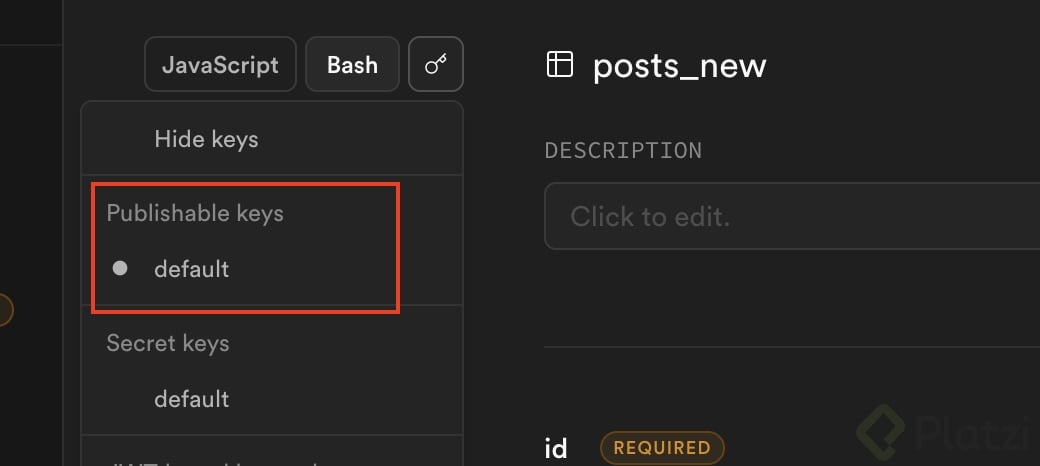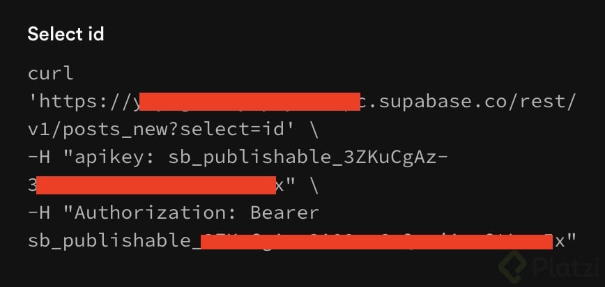 Desde API Docs, Supabase documenta cómo consumir tus tablas y views en JavaScript o en bash. Puedes probar la lectura con un cliente HTTP como httpie y obtener respuestas en tiempo real.