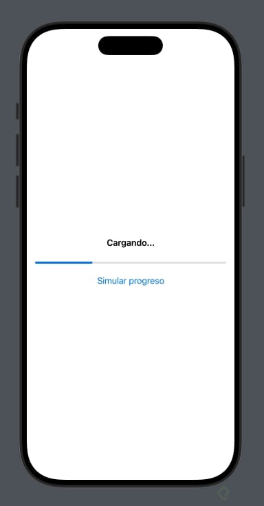 ProgressViewmuestra una barra de progreso basada en el valor deprogress.- Un botón permite incrementar el progreso, simulando una carga.