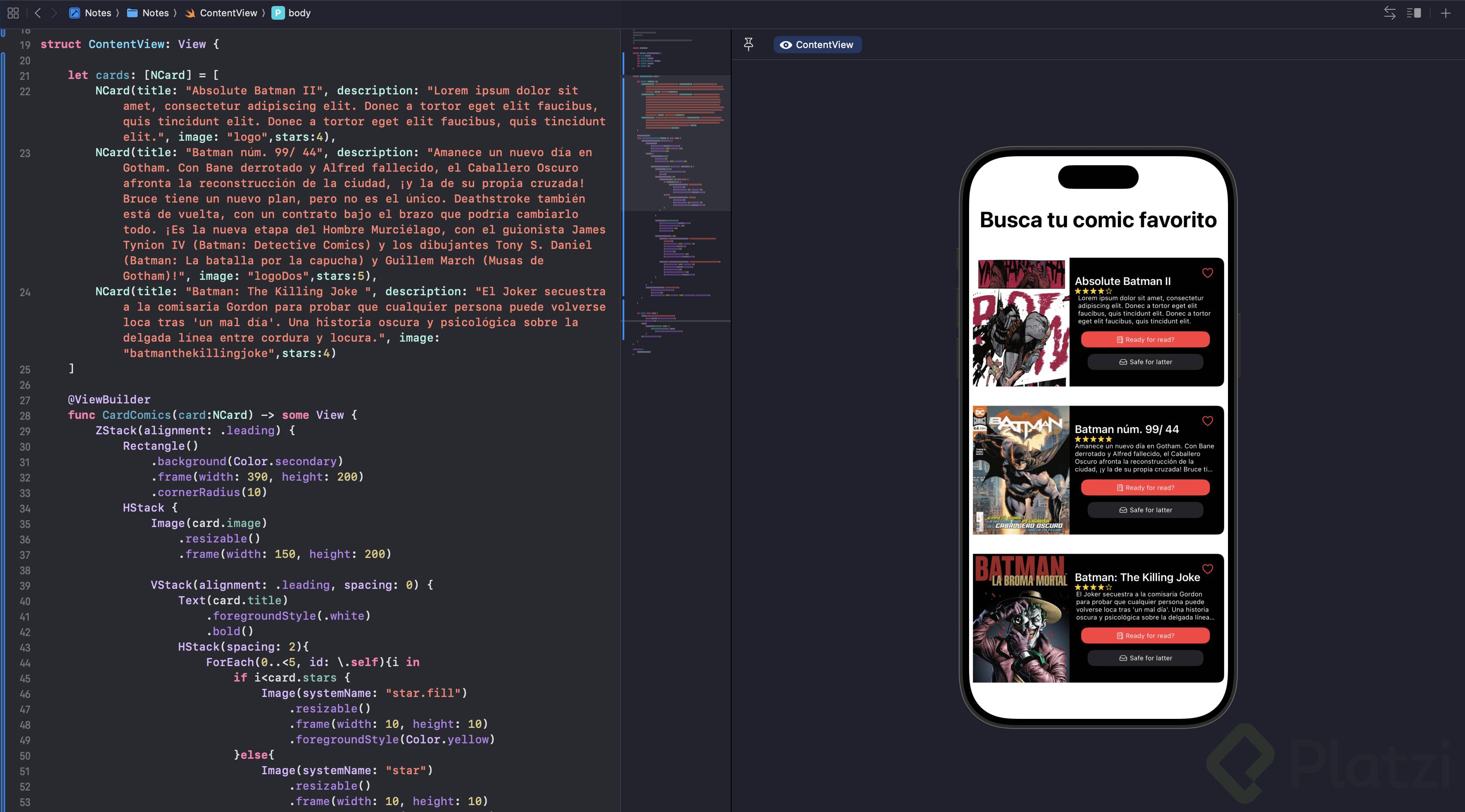 Crear e iterar un array de modelos: una vez establecido el modelo, crea un array para llenarlo con varios Card: