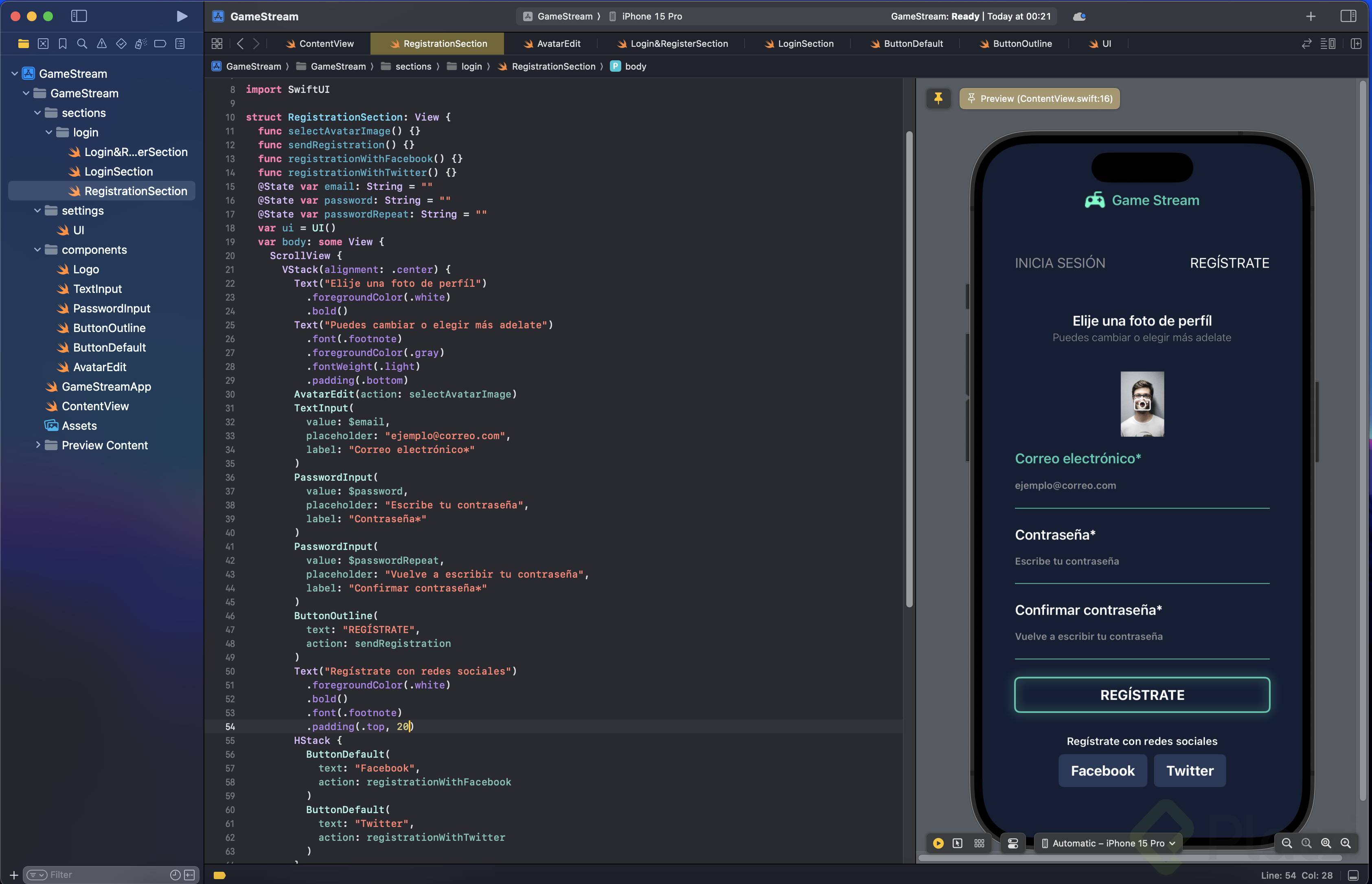 Primero, asegúrate de tener Xcode instalado y crear un nuevo proyecto. Si ya has seguido el desarrollo de la pantalla de inicio de sesión, notarás que muchas de las estructuras y componentes son similares. La clave reside en reaprovechar el código existente para esta nueva pantalla.
