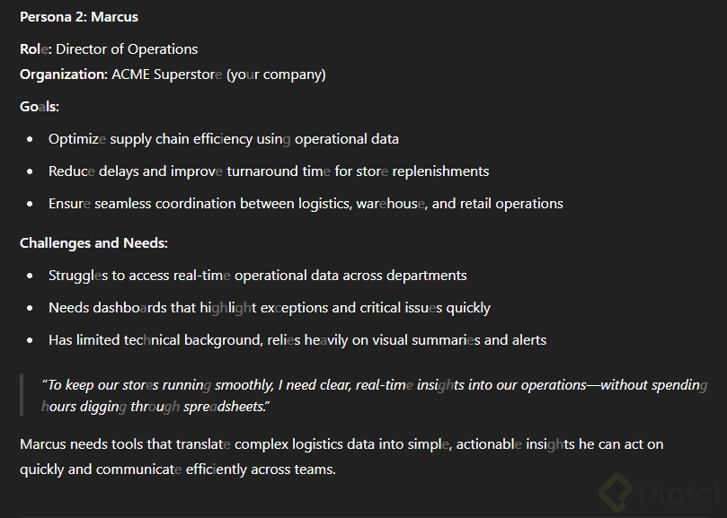 - Define un Perfil Persona (nombre, rol, organización, metas, retos y necesidades)