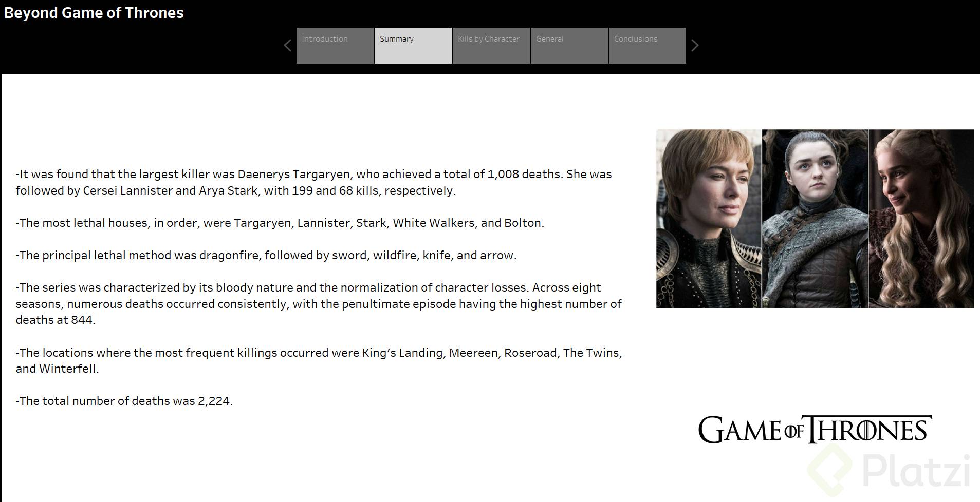 - Data visualizations (las necesarias, preferentemente 3 dashboards o dataviz)