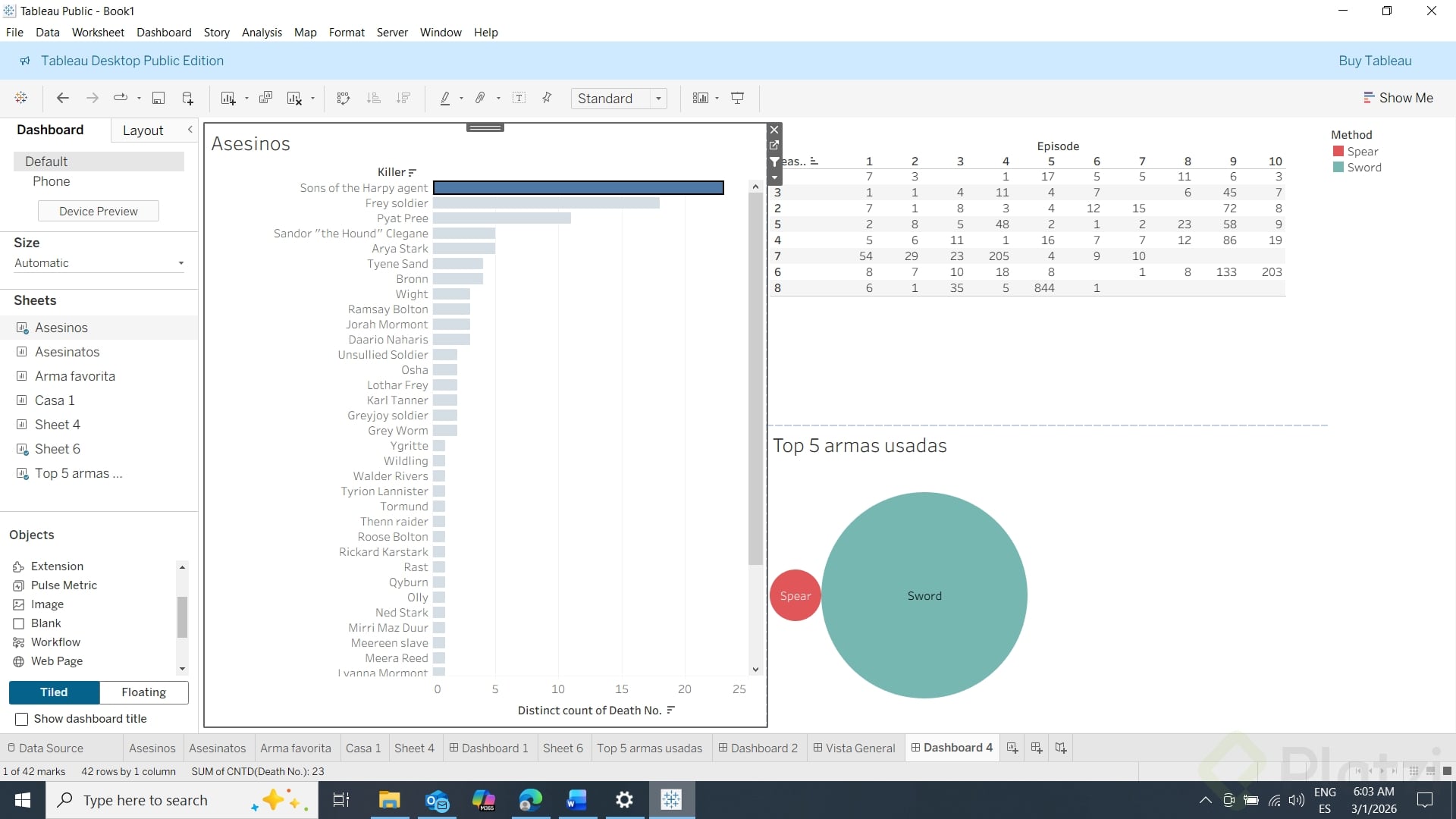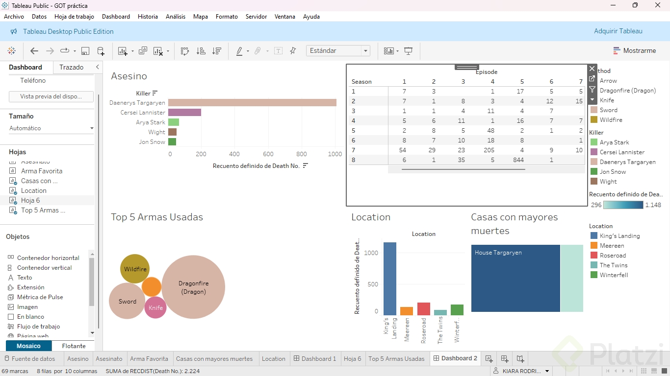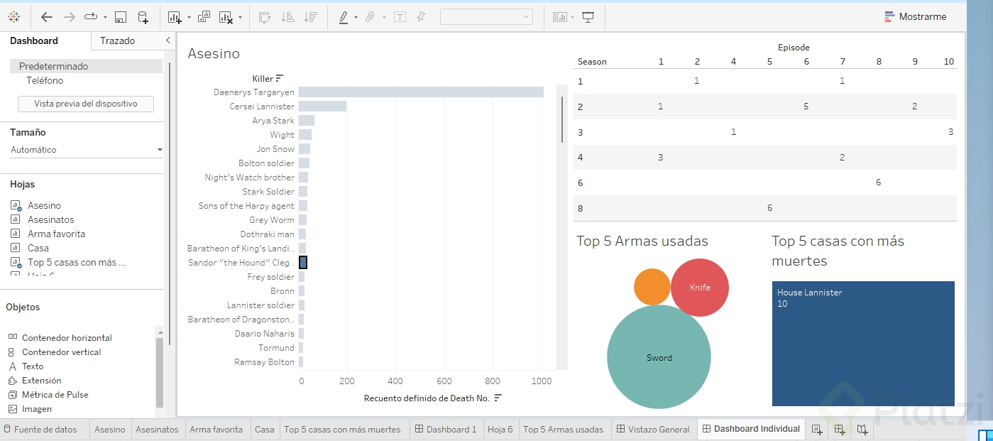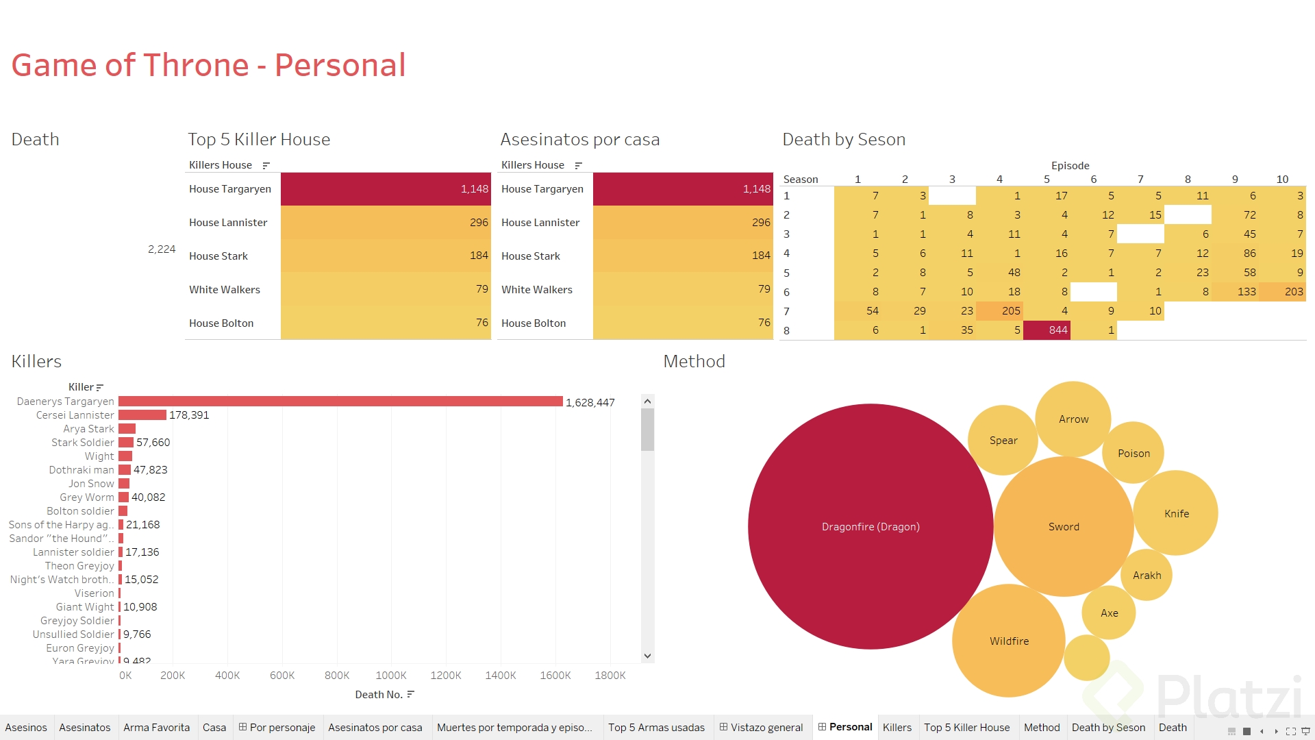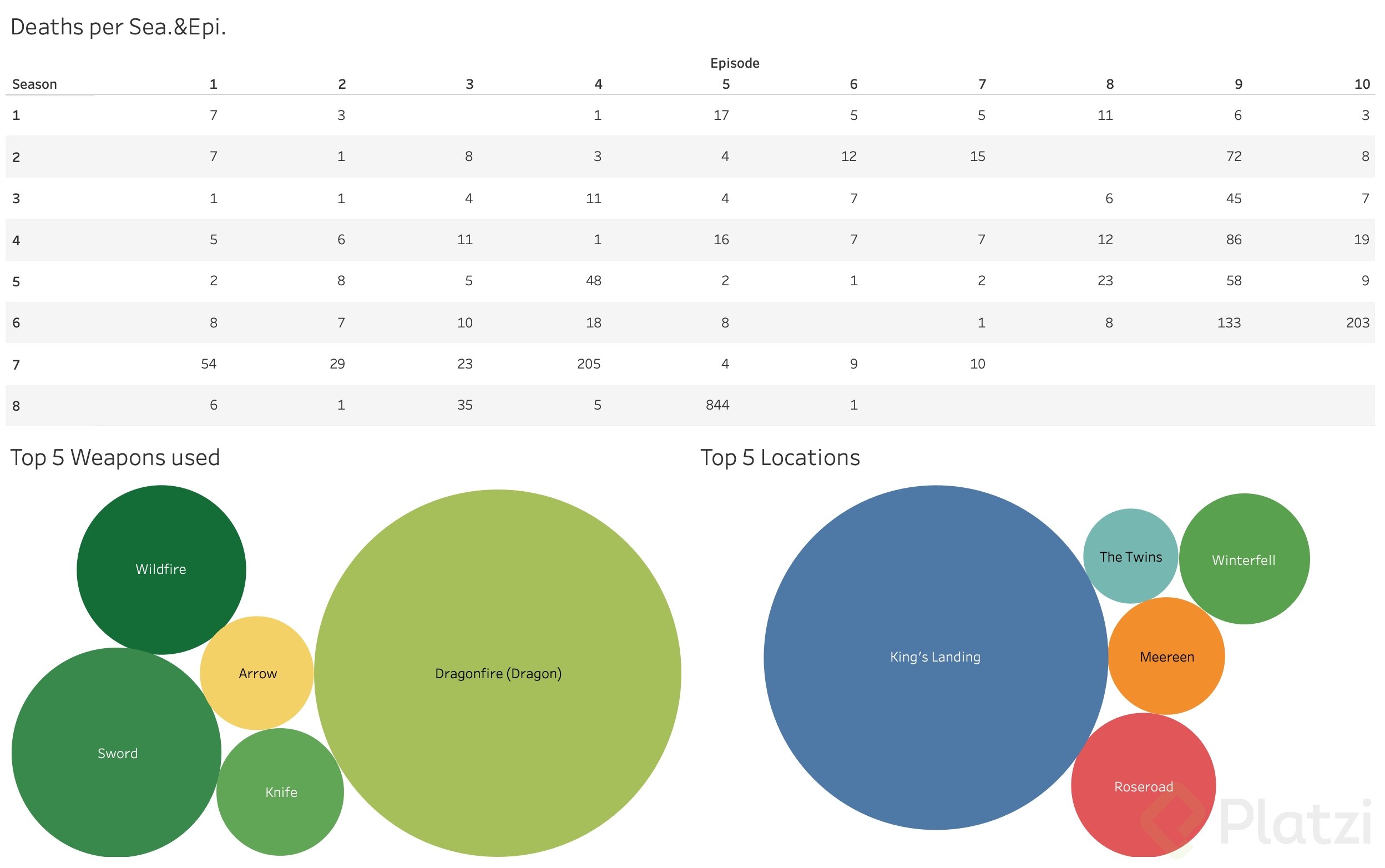 Para facilitar la lectura de nuestra tabla, podemos agregar un 0 en los capítulos que no hubieron asesinatos, y en las celdas en donde no hay capítulos, añadir un N/A, para no confundir.