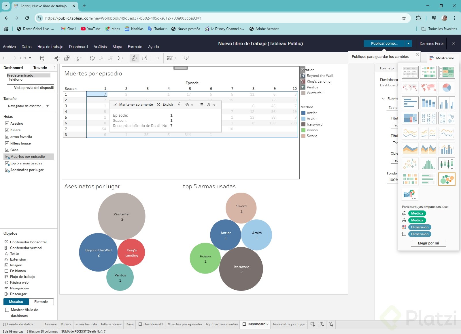 Existen muchis tipos de DataViz, dentro de Tableau, también podemos utilizar gráficos de burbuja.