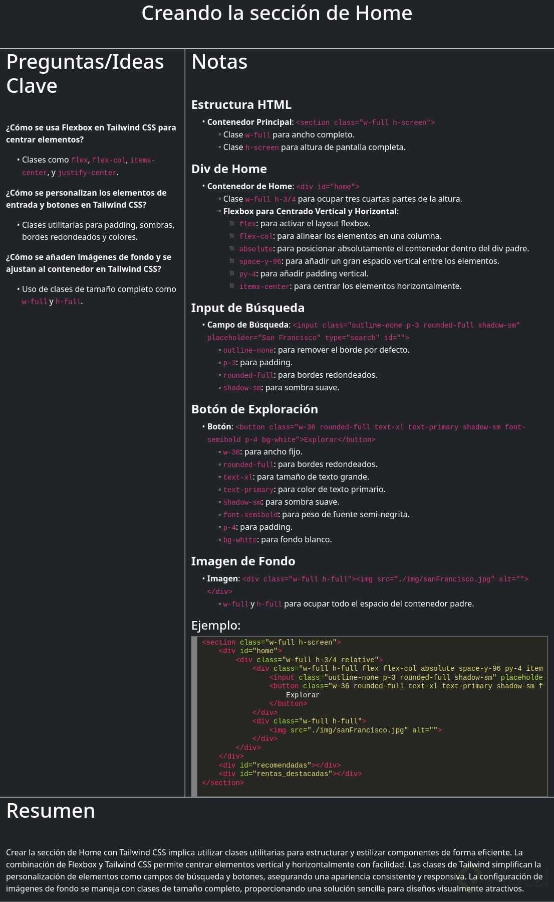 ¿Cómo crear una sección Home efectiva con HTML y Tailwind CSS?