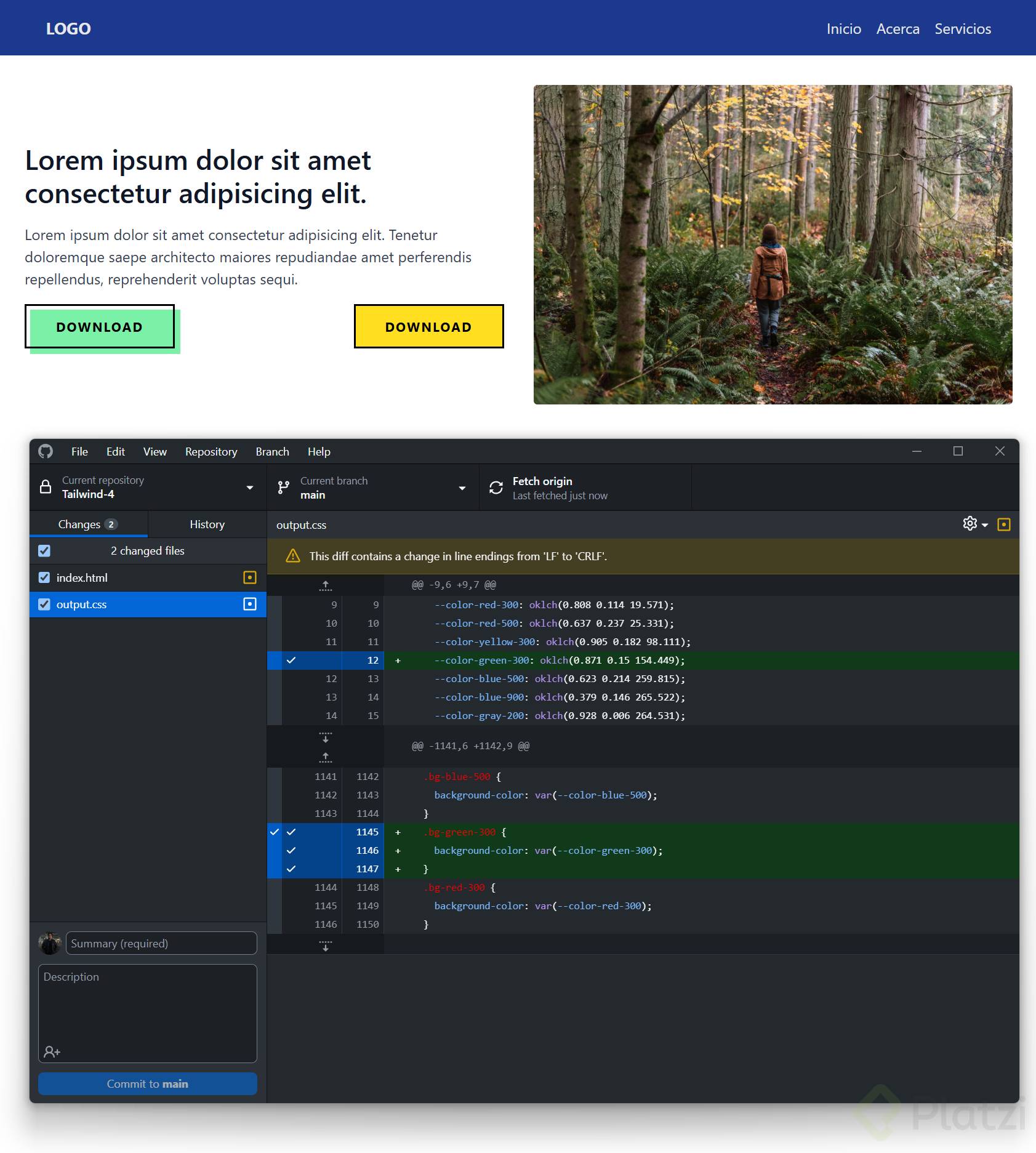 Esto se puede observar claramente al revisar los cambios en el archivo CSS después de agregar nuevas clases: