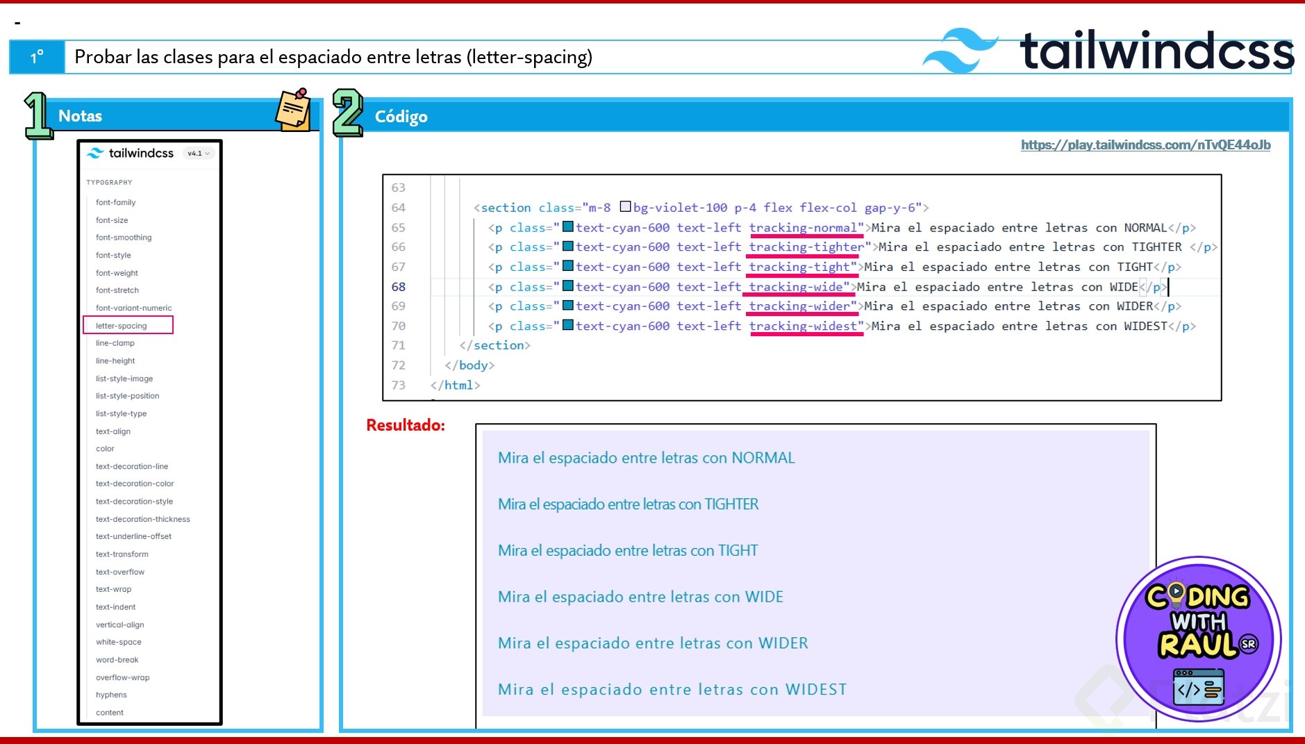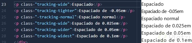 Para el espaciado entre letras (tracking) y líneas, disponemos de las siguientes clases: