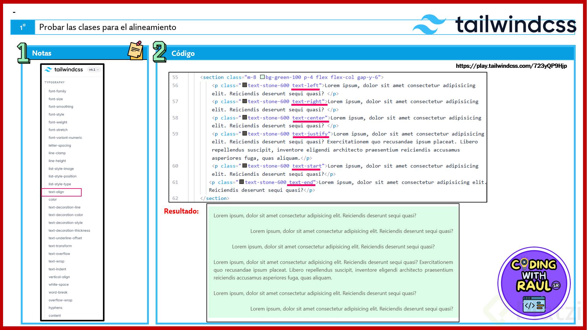 La alineación del texto es otro aspecto fundamental que Tailwind nos permite controlar fácilmente: