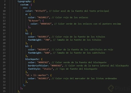 El plugin de tipografía de Tailwind no solo ofrece estilos predeterminados, sino que también permite una amplia personalización para adaptarse a las necesidades específicas de cada proyecto. Algunas opciones de personalización incluyen: