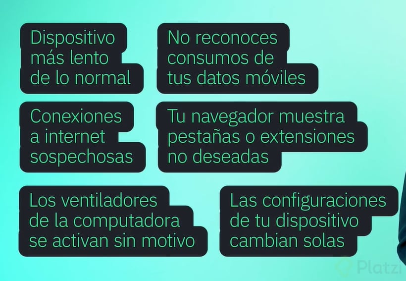 - Impacto en el dispositivo: Cambios inusuales en el dispositivo, como ralentización, cambios en configuraciones o conexiones sospechosas, pueden indicar una infección.