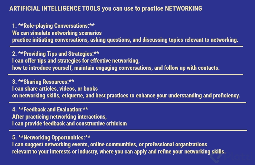 - Inicia y continua la conversación: Por ejemplo, "Hola, soy Julian. Encantado de conocerte. ¿Qué aspecto de la charla resonó más contigo?". Esto te permitirá practicar tanto respuestas como preguntas.