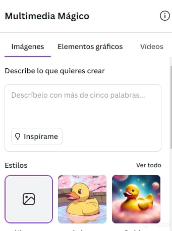 - Busca la sección "Convierte tus ideas en imágenes o videos con multimedia mágico".