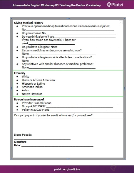 Enfrentarse a los formularios médicos en Estados Unidos puede ser una tarea compleja, especialmente cuando el idioma y las costumbres culturales son diferentes a las que conocemos. Esta clase te proporciona las herramientas necesarias para navegar con éxito estos documentos y asegurarte de que la información que proporciones sea clara y precisa.