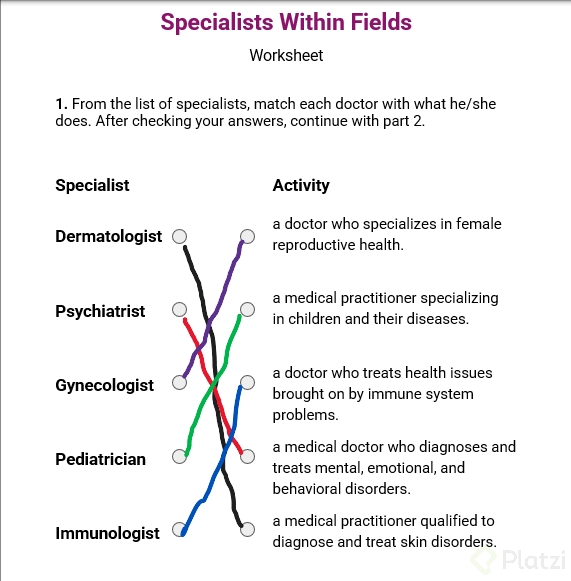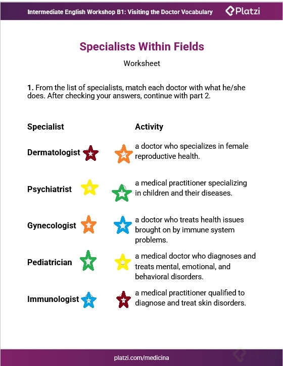 Además, completa la ficha de trabajo sobre médicos y sus especialidades para fortalecer aún más tu comprensión del mundo médico. ¡Esperamos verte en la próxima clase para seguir este emocionante viaje educativo! ¡Sigue aprendiendo con entusiasmo!