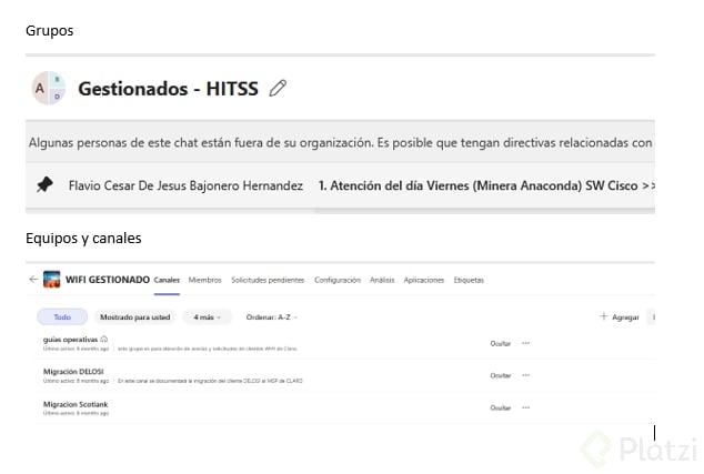 Microsoft Teams propone tres niveles claros de comunicación orientados a tus necesidades específicas: