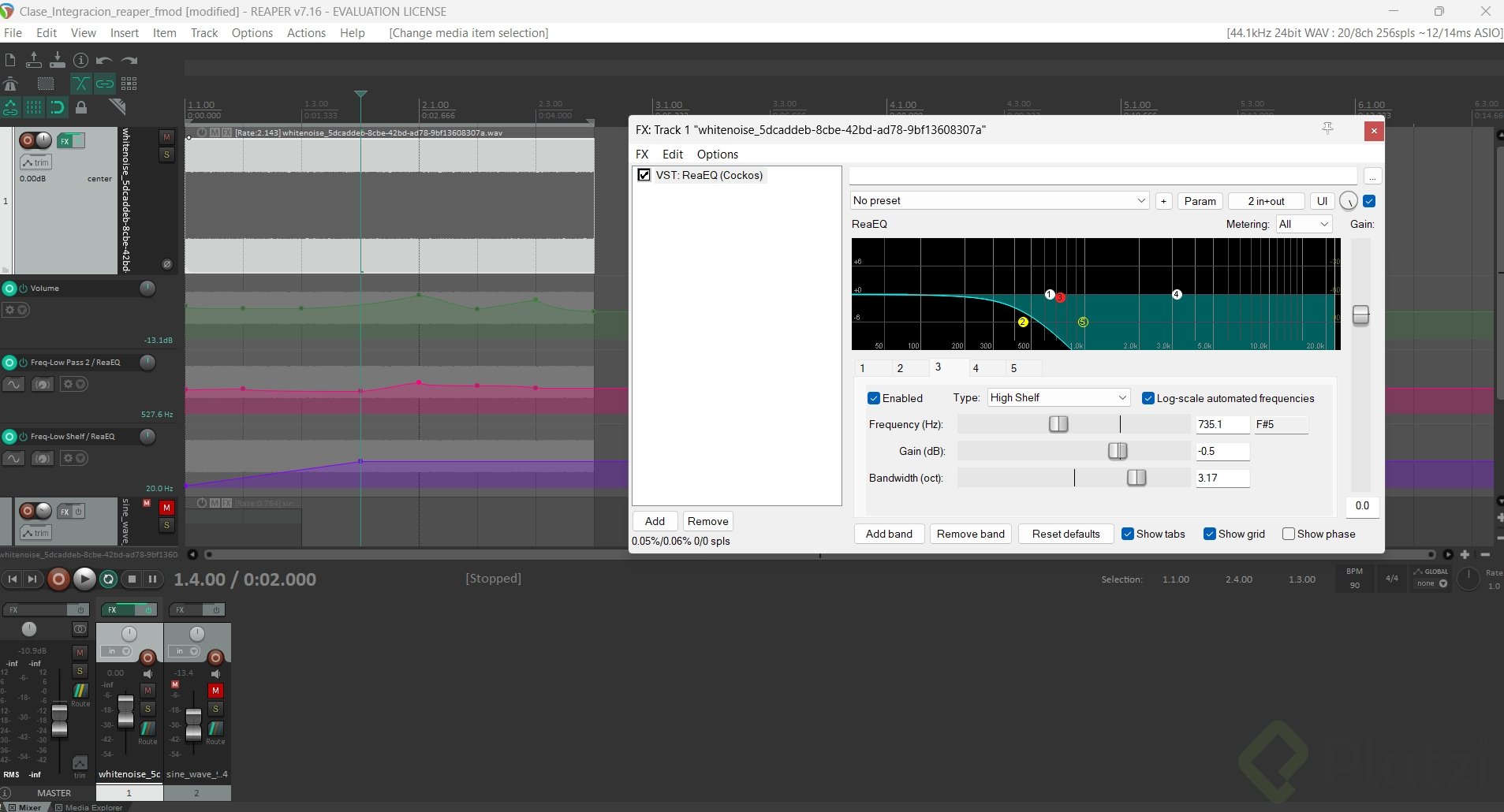 No solo el volumen es automatizable. De hecho, con un simple atajo como la tecla V y accediendo nuevamente a 'Trim', podemos automatizar cualquier parámetro de un plugin. Por ejemplo, con el ecualizador ReaEQ, es posible manipular la frecuencia de una banda específica, lo que nos permite modelar el sonido de maneras novedosas, como imitar el sonido de un viento o una tormenta.