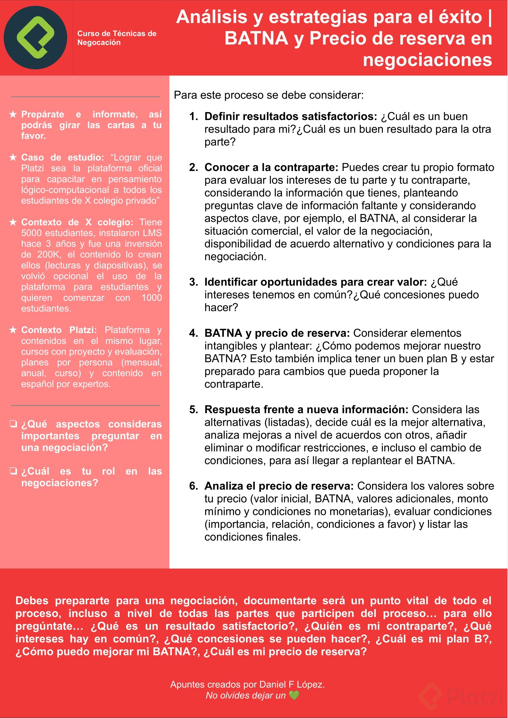 Puedes apoyarte de los formatos que encuentras en la sección de archivos para determinar tu BATNA y precio de reserva.