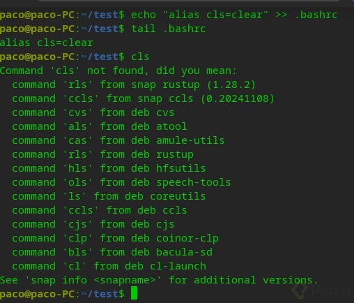 Por ejemplo, para crear un alias que limpie rápidamente la pantalla: