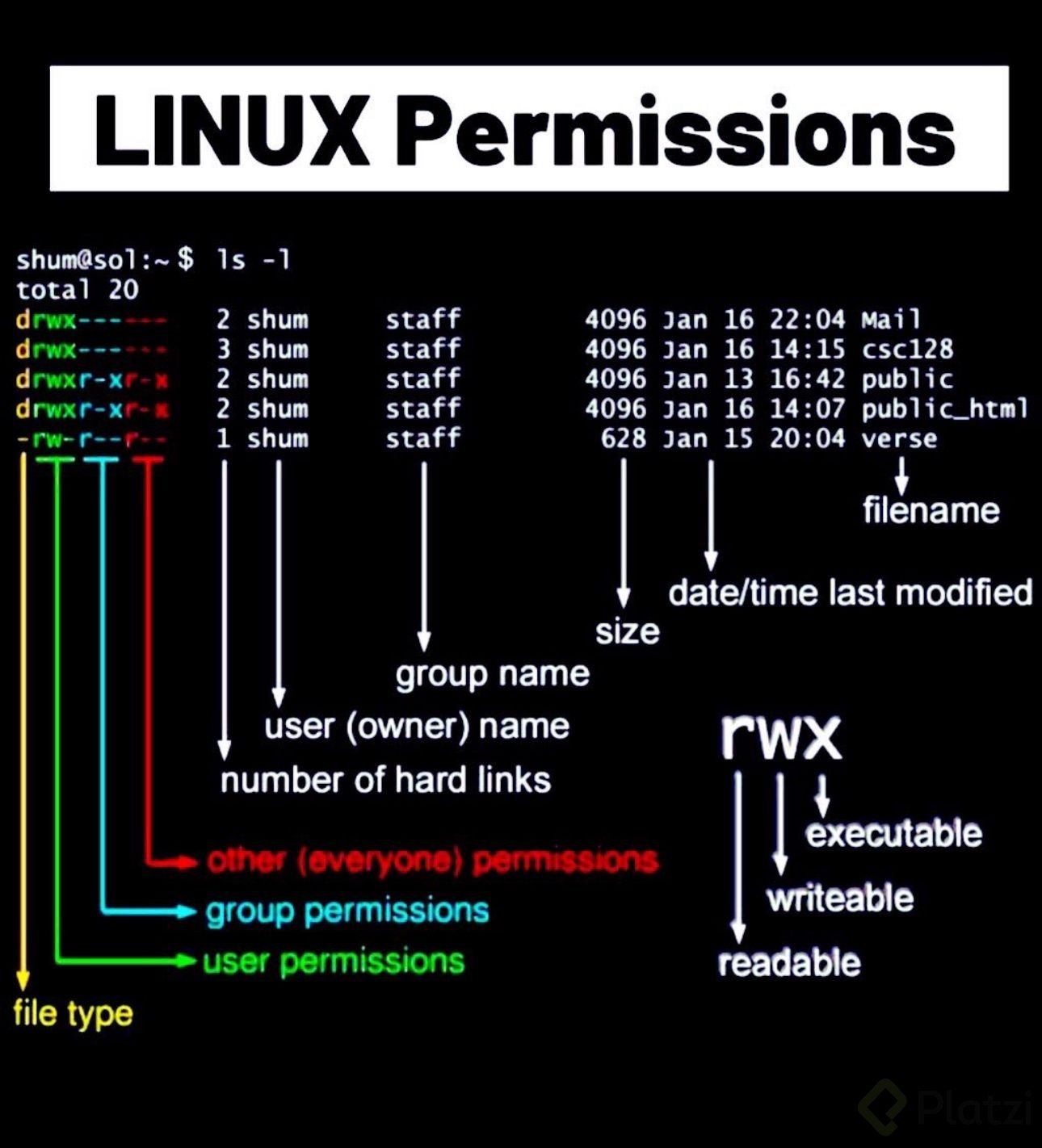 En sistemas Linux y Unix, incluidos los Mac, los permisos indican claramente las acciones que pueden realizar los usuarios sobre cada archivo o directorio. Existen tres tipos básicos: