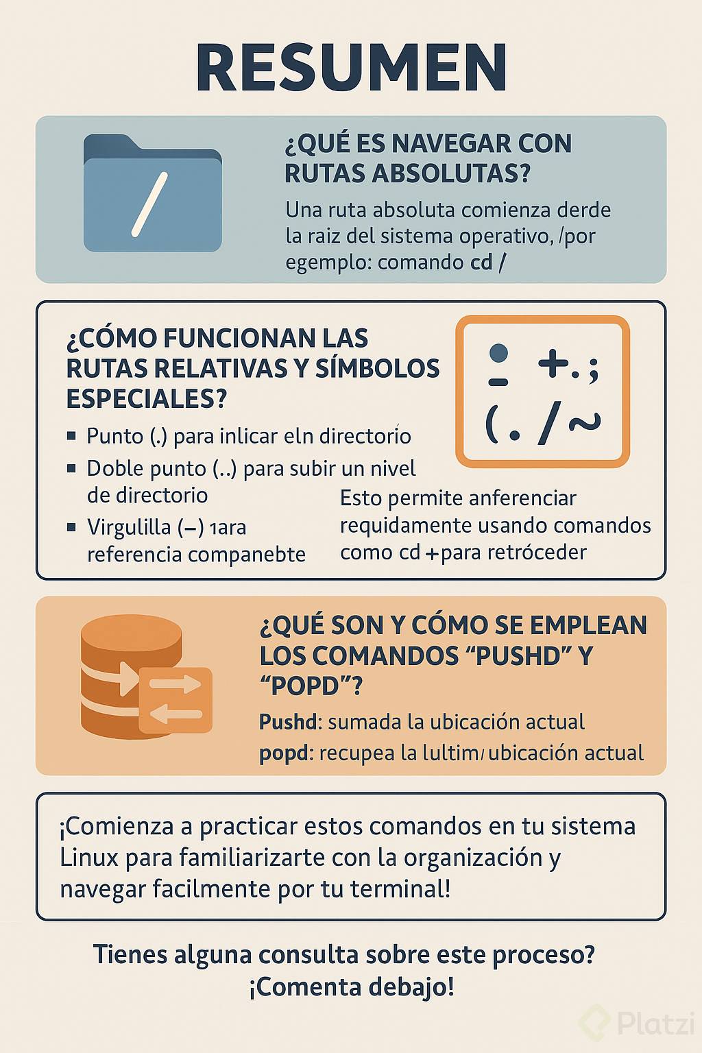 Dominar la navegación entre directorios en sistemas Linux es una habilidad fundamental para interactuar con el sistema operativo mediante comandos desde la terminal. Aprenderemos cómo desplazarnos eficientemente usando rutas absolutas y relativas, así como símbolos útiles como punto (.), doble punto (..), slash (/) y virgulilla (~).