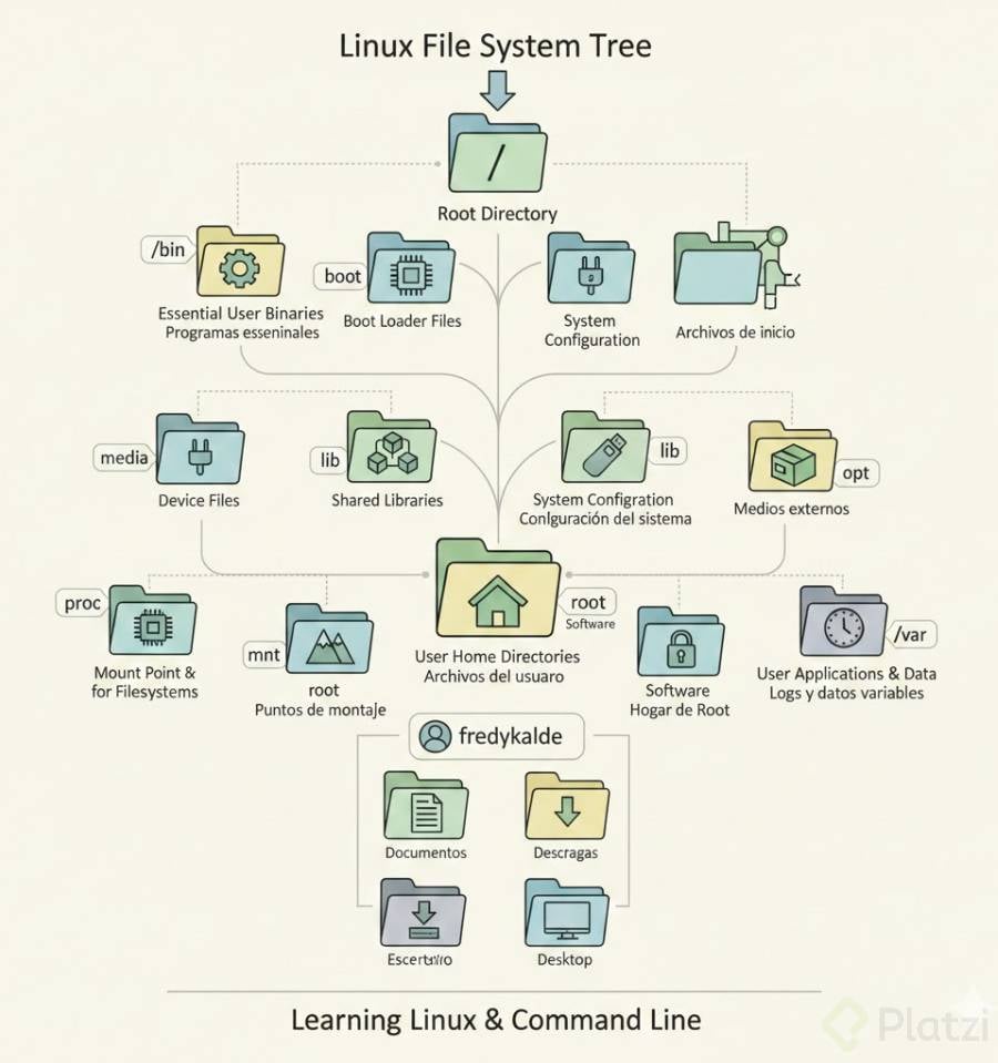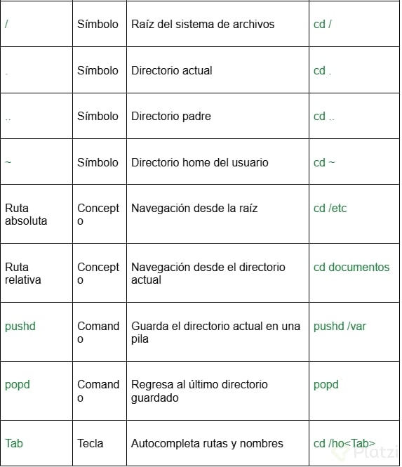 Esto permite desplazarnos rápidamente usando comandos como cd .. para retroceder y cd ~ para ir al home del usuario rápidamente, independientemente del directorio actual.