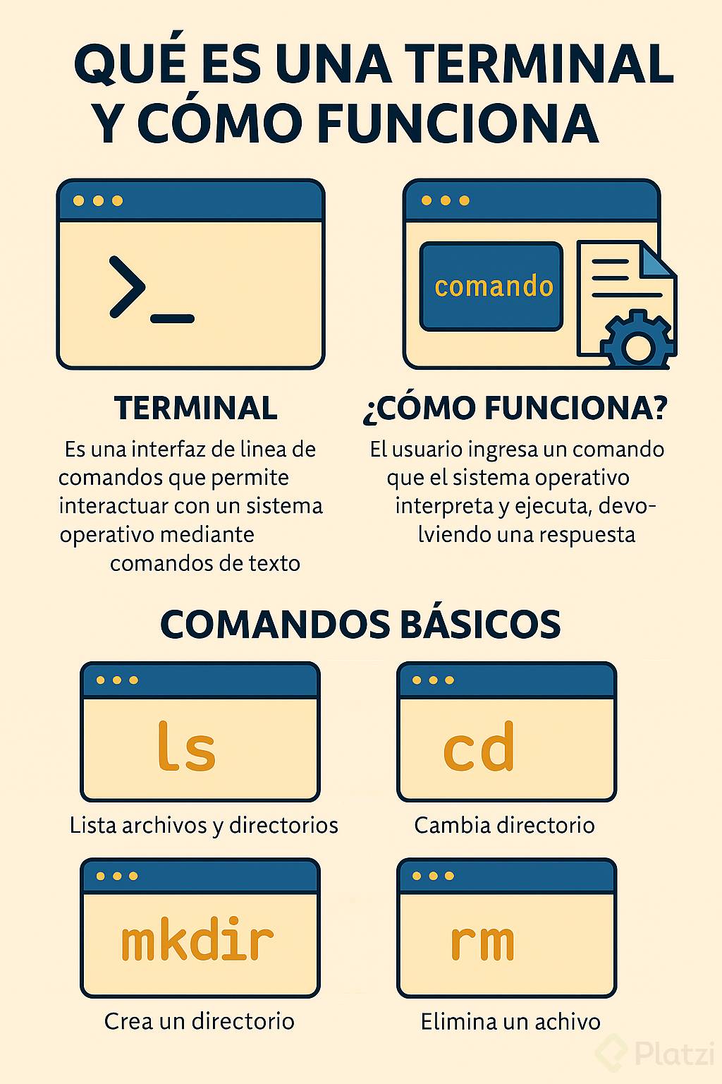 Una terminal es básicamente una interfaz de usuario que facilita la comunicación con el sistema operativo mediante comandos específicos. Estos comandos te permiten realizar acciones concretas, como crear, copiar o eliminar archivos, además de administrar procesos y otras tareas importantes de configuración.