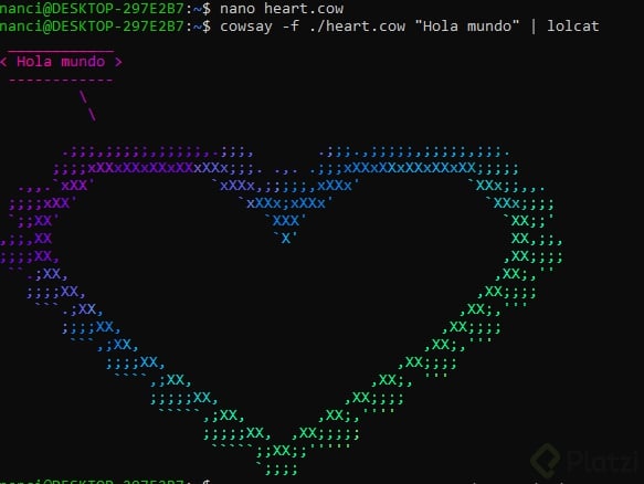 Es posible usar la salida de un comando como entrada directa (standard input) de otro utilizando el denominado pipe operator (|). Por ejemplo, los comandos LOLCAT o Cowsay usados habitualmente en ejercicios educativos, pueden recibir entradas de esta manera: