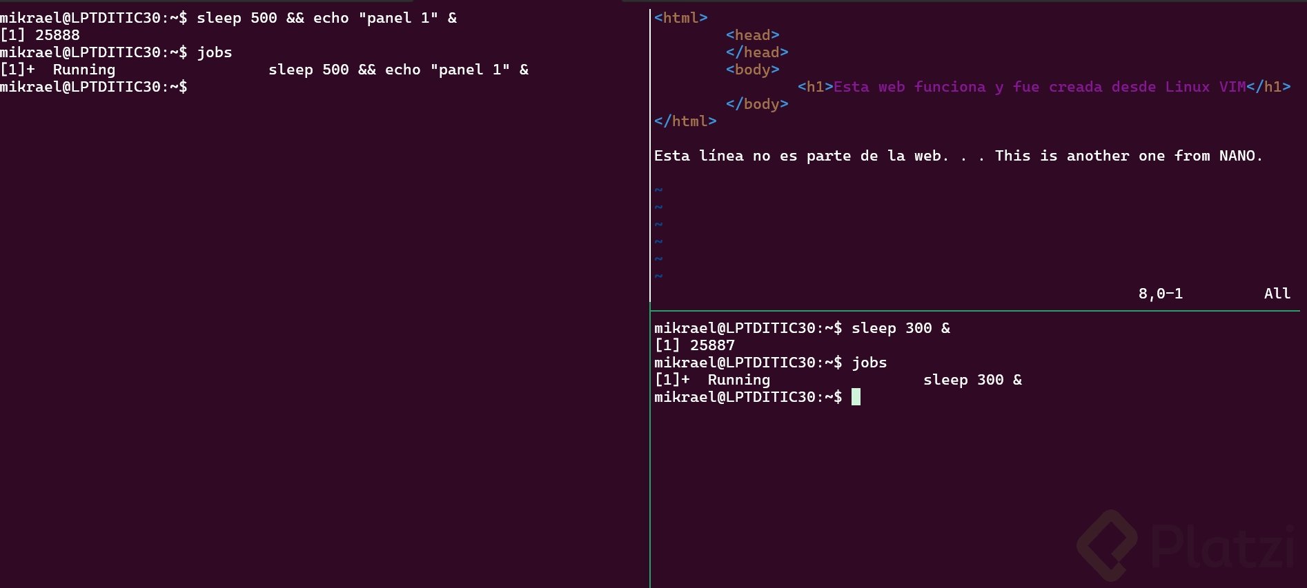 exito usa la combinacióncontrol+d. - Moverse entre paneles: después del prefijo, utiliza las teclas de flecha para navegar.
