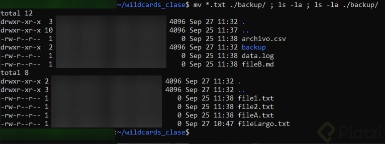 Con estos comandos, mueves todos los archivos .txt hacia una carpeta llamada backup.