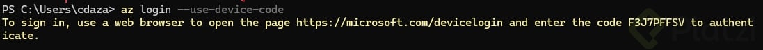 az login --use-device-code. - Paso adicional: Sigue las instrucciones para introducir el código que aparece en tu terminal en el navegador.