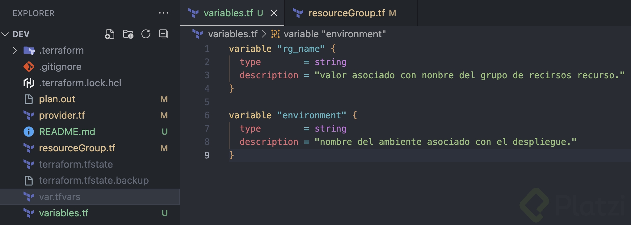 variables.tf: Centraliza tus variables aquí.- Asegúrate de que el nombre del archivo sea exactamente
